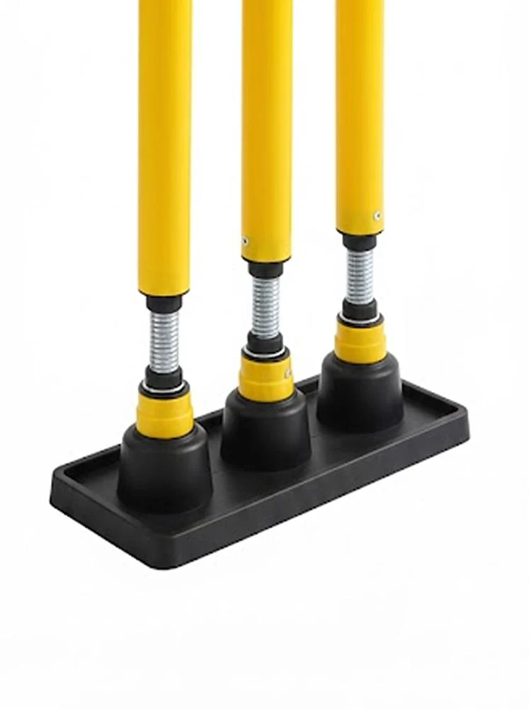 Designed for durability and convenience, these high-visibility yellow stumps feature a robust spring-loaded mechanism that automatically returns them to an upright position after being hit.
